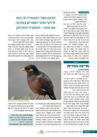פתוחה בימים א׳-ה׳ ;18:00–10:00 ש״ח .המיוחד בציפור הזאת הוא יכולת החיקוי