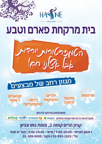 ראשון-חמישי | 9:00-20:00 -שישי | 9:00-14:00 -מוצ״ש סגור