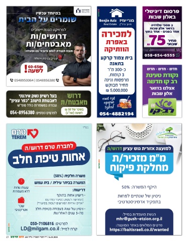 | 16.10.2024י"ד תשרי תשפ"ה | גליון 430גוש ארבע 23